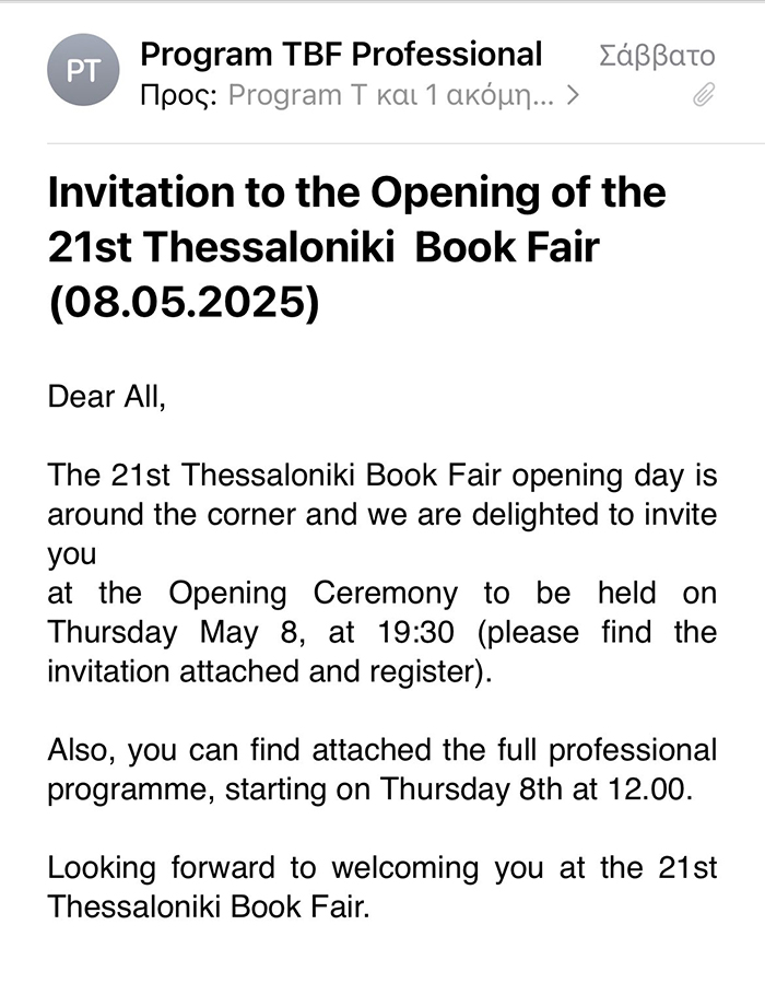 Και τις τρείς μέρες πραγματοποιήσαμε προγραμματισμένα, καθώς και έκτακτα ραντεβού με επιφανείς εκδοτικούς οίκους του εξωτερικού που συμμετείχαν στο διεθνές επαγγελματικό πρόγραμμα της ΔΕΒΘ, αλλά και literary agents από το εξωτερικό όπου και συζητήσαμε για προοπτικές συνεργασίας και νέα ανοίγματα. Το ενδιαφέρον υπήρξε μεγάλο και προχωράμε!