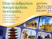 Σχήματα, μορφές και γραμμές· ρυθμοί, δομές και ρεύματα: η πορεία του ανθρώπου αντικατοπτρίζεται στα κτήρια στα οποία ζει και κατοικεί, λατρεύει και τελετουργεί, διασκεδάζει και ψυχαγωγείται.