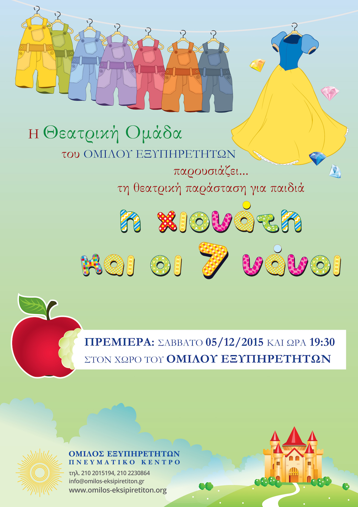 Στις 5 Δεκεμβρίου 2015 και ώρα 19:30 γίνεται στο χώρο μας η πρεμιέρα του νέου έργου της Ομάδας Ψυχαγωγικού του Ομίλου. Μετά την πρώτη μας παράσταση θα επισκεφτούμε και πάλι τους μικρούς μας φίλους στους χώρους φροντίδας και φιλοξενίας τους, σε νοσοκομεία, ιδρύματα κ.α με το καινούριο μας έργο.