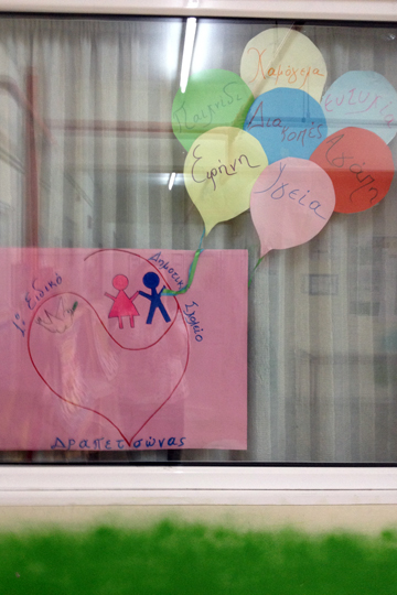 Στο 1ο Ειδικό Δημοτικό Σχολείο και Νηπιαγωγείο Δραπετσώνας πήγαμε μετά από πρόσκληση που μας έκανε η Πρόεδρος του Συλλόγου Γονέων και Κηδεμόνων. Είδε το έργο μας σε άλλους χώρους που έχουμε επισκεφτεί, επικοινώνησε μαζί μας και όλα οργανώθηκαν άμεσα και απλά σε συνεργασία με την ίδια καθώς και με τον Διευθυντή του Σχολείου.