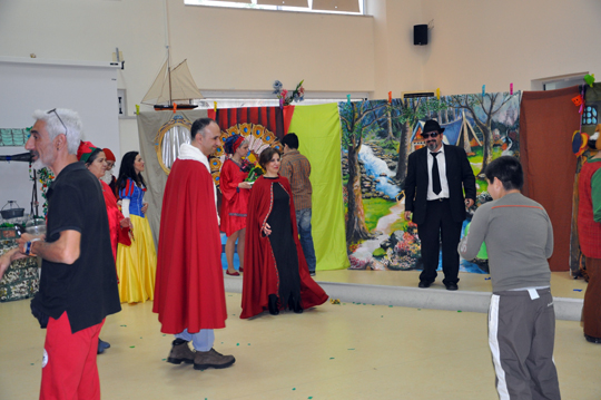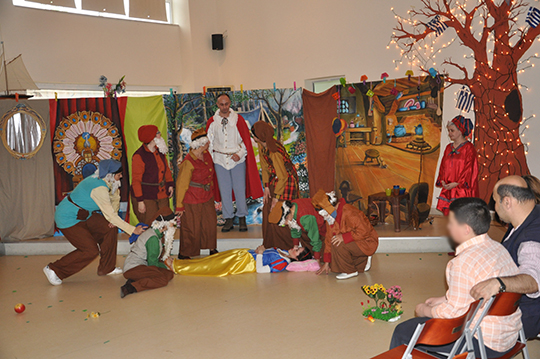 Το Σάββατο 23 Απριλίου 2016, λοιπόν, το απόγευμα φτάσαμε στον όμορφο και φροντισμένο χώρο του σχολείου, στήσαμε τα σκηνικά μας, κάναμε μια μικρή πρόβα, βάλαμε κουστούμια και ξεκινήσαμε.
