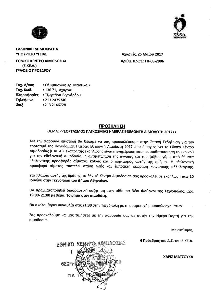 Το Σάββατο 10/06/2017 παρευρεθήκαμε σε εκδήλωση του Εθνικού Κέντρου Αιμοδοσίας