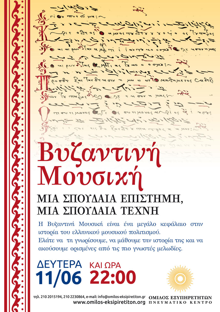 Σας προσκαλούμε στην παρουσίασή μας: «Βυζαντινή Μουσική: Μια σπουδαία επιστήμη, μια σπουδαία τέχνη» – 11-06-2018