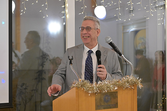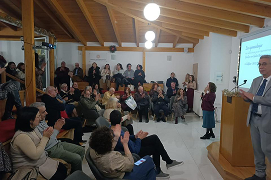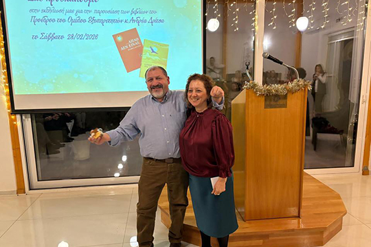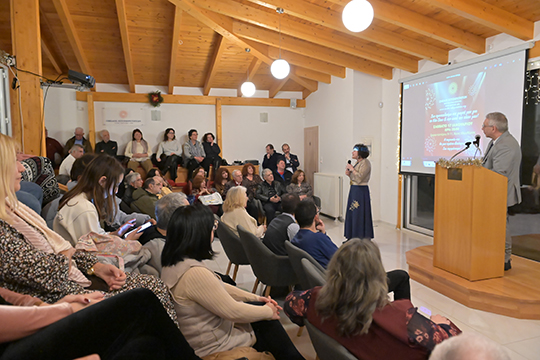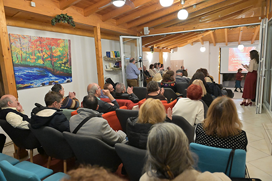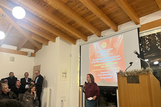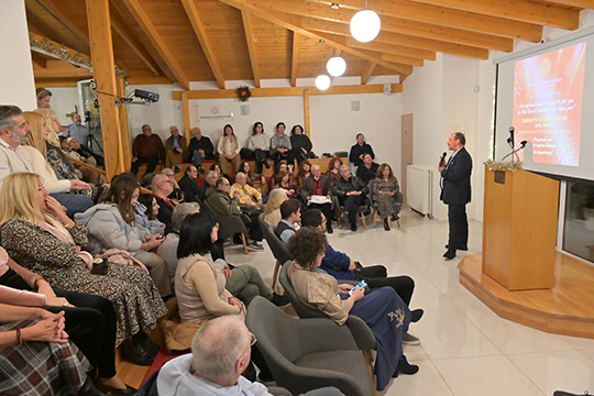 Ο Πρόεδρος και η Αντιπρόεδρος του Ομίλου καλωσόρισαν τους παρευρισκομένους προτού ξεκινήσει η παρουσίαση του έργου που πραγματώσαμε το 2025.