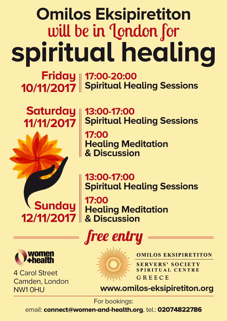 Ομάδα του Ομίλου στην Αγγλία, προσωπικά ραντεβού με τα μέλη, πνευματική θεραπεία και ομάδες διαλογισμού και συζήτησης στο Women and Health η ατζέντα μας στο Λονδίνο.